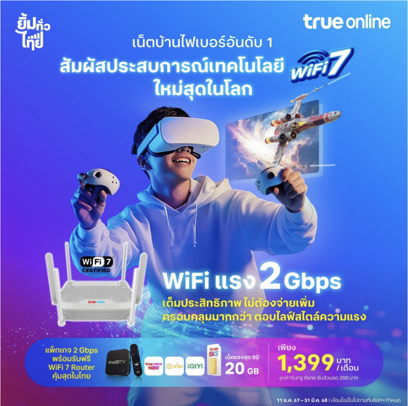 สรุปสั้น: Wi-Fi 7 (มาตรฐาน IEEE 802.11be) คือก้าวต่อไปของ Wi-Fi ที่เน้นความเร็วสูงสุด ความหน่วงต่ำกว่า และความเสถียรสำหรับการใช้งานยุคใหม่ เช่น สตรีม 8K, VR/AR, คลาวด์เกมมิ่ง และบ้านที่มีอุปกรณ์จำนวนมาก — หากต้องการรับประสบการณ์เต็มที่ แนะนำพิจารณาอัปเกรดเราเตอร์/อุปกรณ์ที่รองรับ Wi-Fi 7 และเลือกแพ็กเกจไฟเบอร์ที่รองรับความเร็วสูงจากผู้ให้บริการ เช่น ติดเน็ตบ้านทรู. สารบัญ Wi-Fi 7 คืออะไร (สั้น ๆ) Wi-Fi 7 (หรือ IEEE 802.11be) เป็นมาตรฐาน Wi-Fi เจนเนอเรชันต่อจาก Wi-Fi 6 / 6E ที่เน้นเพิ่ม throughput สูงสุด ลด latency และจัดการการใช้งานพร้อมกันของอุปกรณ์หลายชิ้นได้ดีขึ้น เหมาะกับบ้านสมัยใหม่ที่มีอุปกรณ์สตรีมมิ่ง เกมมิ่ง และอุปกรณ์ IoT จำนวนมาก คุณสมบัติเด่นของ […]